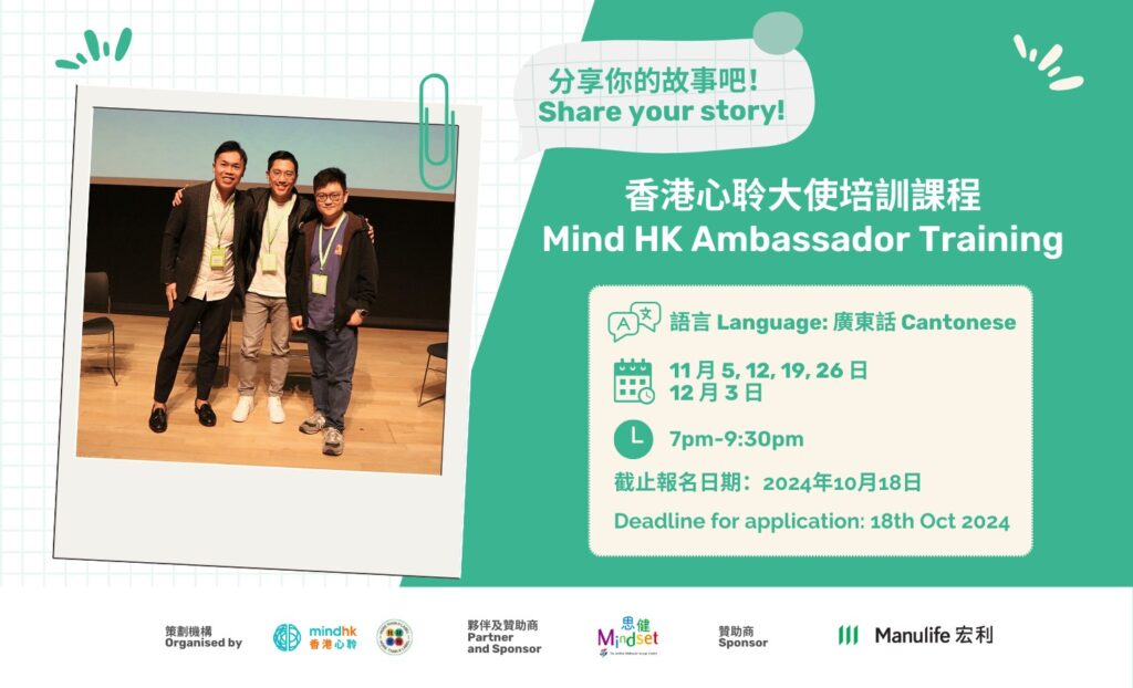 We provided ambassador training for individuals who have experienced mental health problems to become Mind HK Ambassadors and share their lived experiences.