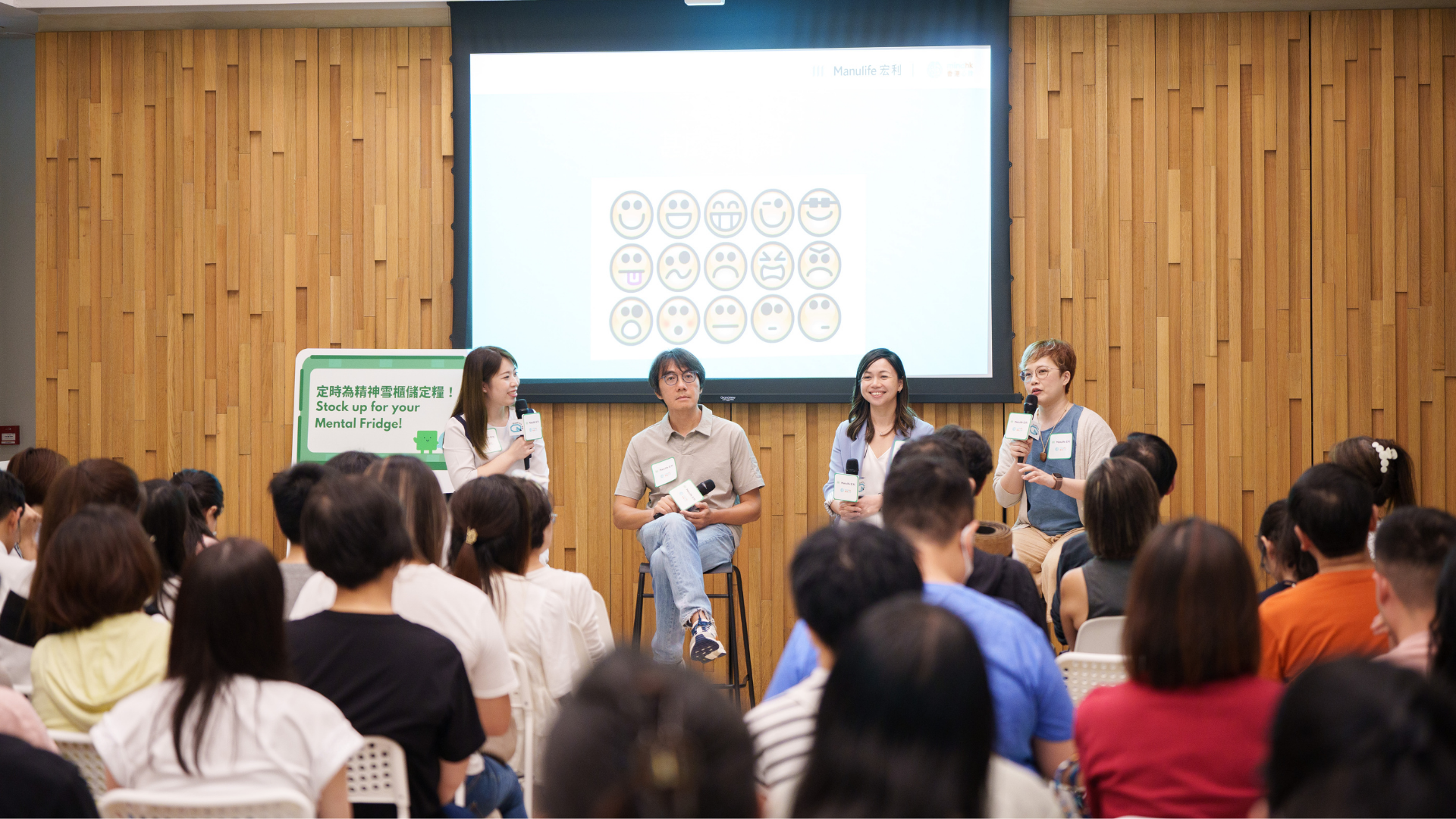 An insightful session was held in June 2024, featuring linguistics expert and former senior lecturer Ben Sir, Mind HK CEO Candice, Mind HK clinical advisor Opal and Mental Health Ambassador Phoebe, sharing both professional insights and personal experiences on emotional management.